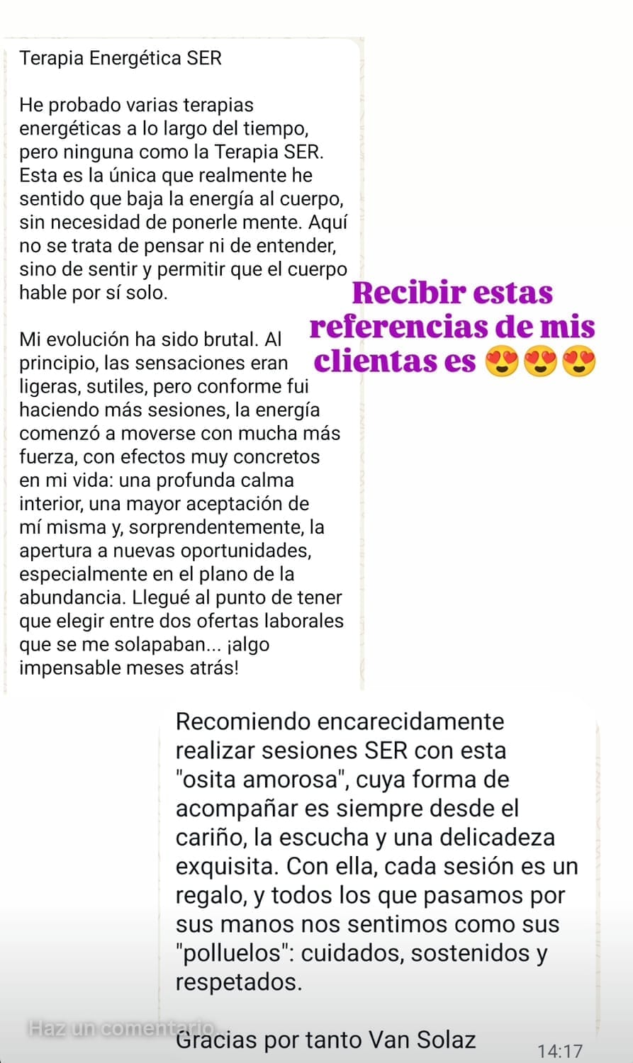 También soy facilitadora terapia energética SER, donde ayudo a las personas a desbloquear memorias somáticas del cuerpo.
