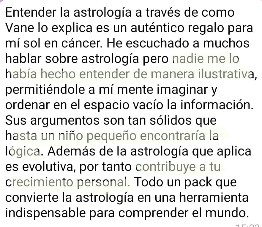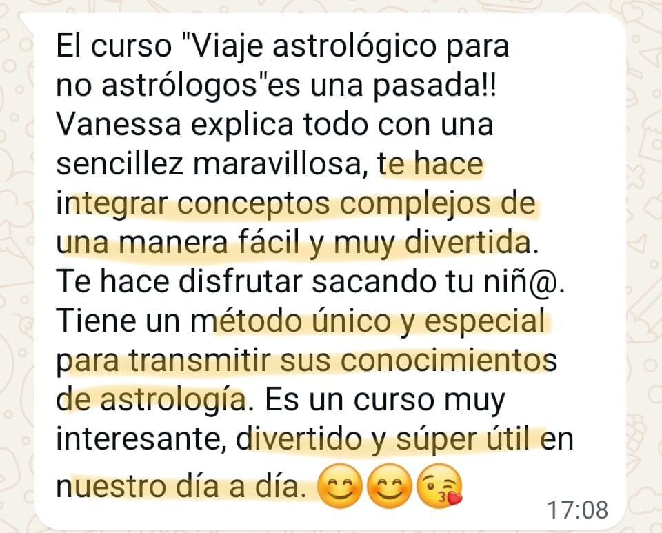 Además, si eres terapeuta y no quieres meterte en curso de Astrología farragoso y de mucho tiempo, aquí tienes tu solución. Conocerás lo esencial para poder apoyarte en la carta natal de tus clientes y darles un servicio mucho más completo e ir al grano.